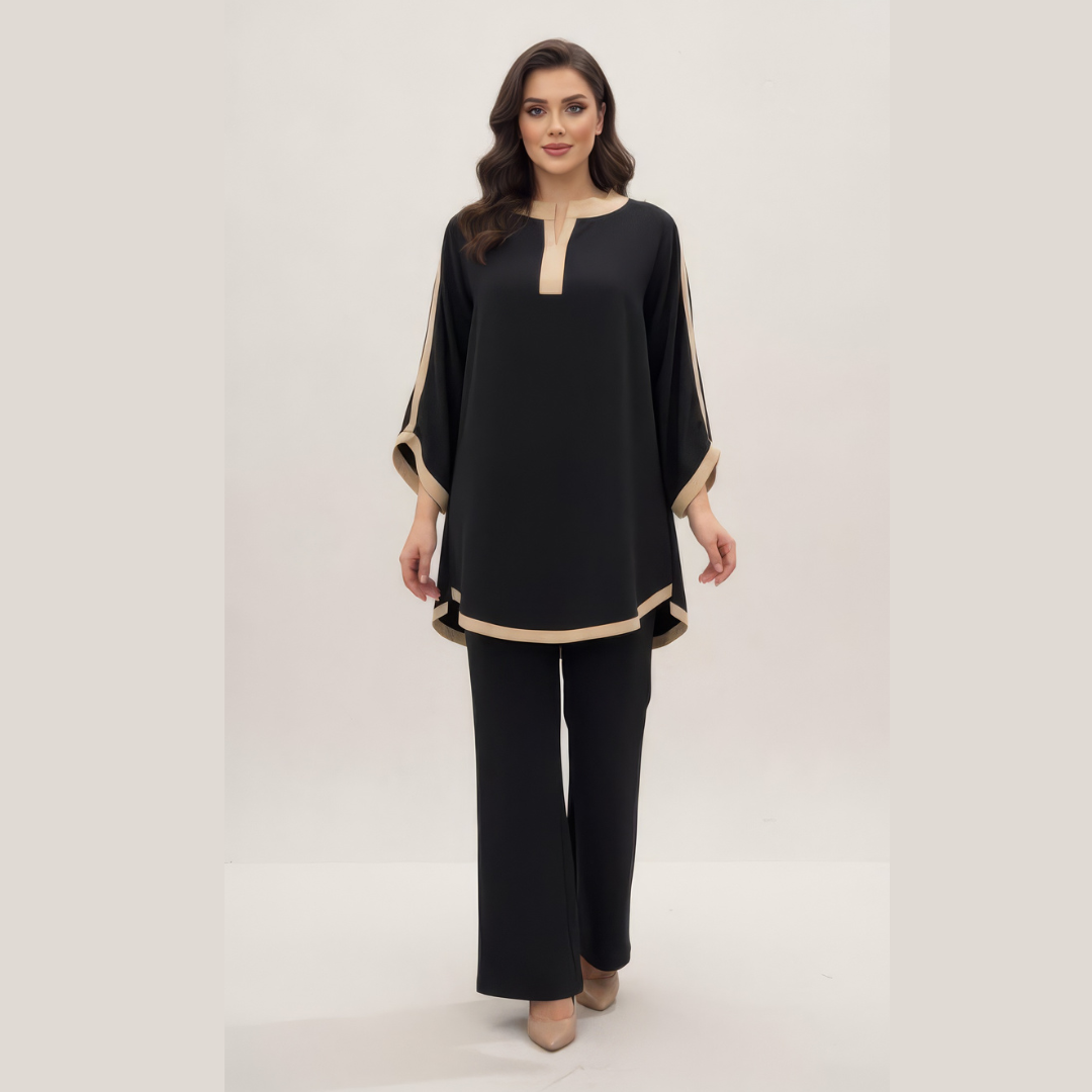 এই এলিগ্যান্ট টপ সেটটি আধুনিক মিনিমাল লুক এবং আরামের সুন্দর ভারসাম্য তৈরি করেছে। ডিপ ব্লু রঙের সাথে বেইজ টোনের কনট্রাস্ট ট্রিম পুরো ডিজাইনটিকে দিয়েছে পরিশীলিত ও স্মার্ট ফিনিশ। নেকলাইন, স্লিভ ও হেম লাইনে ক্লিন কাট ডিটেইল সেটটিকে অফিস, ক্যাজুয়াল আউটিং কিংবা নিয়মিত ব্যবহারের জন্য মানানসই করে তোলে। ফ্যাব্রিকের ফ্লুইড ফিল এবং ঢিলেঢালা ফিট শরীরের উপর স্বাভাবিকভাবে বসে, ফলে দীর্ঘ সময় পরলেও অস্বস্তি লাগে না।